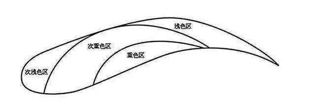 为了可以获得更加自然真实的效果,我们可以根据眉毛生长的规律,把眉毛操作的明暗度大致划分为重色区、次重色区、浅色区、次浅色区这个几个区域