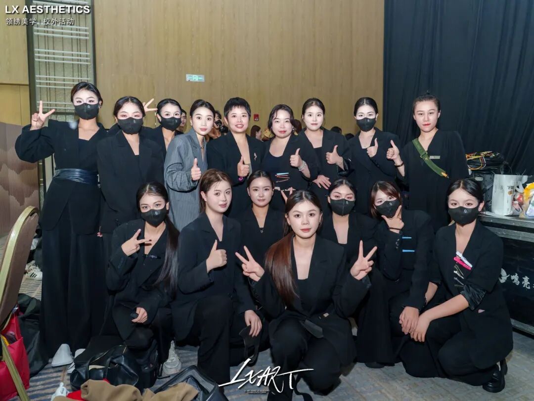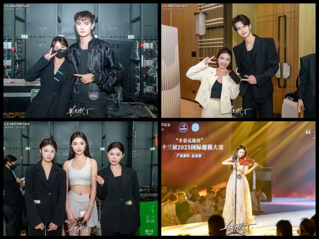在流光溢彩的舞台背后,领绣美学化妆团队在丁雪玲校长的带领下,全程负责所有参赛模特的妆造设计,以专业技艺为这场国际赛事增添了一道亮丽的风景线。